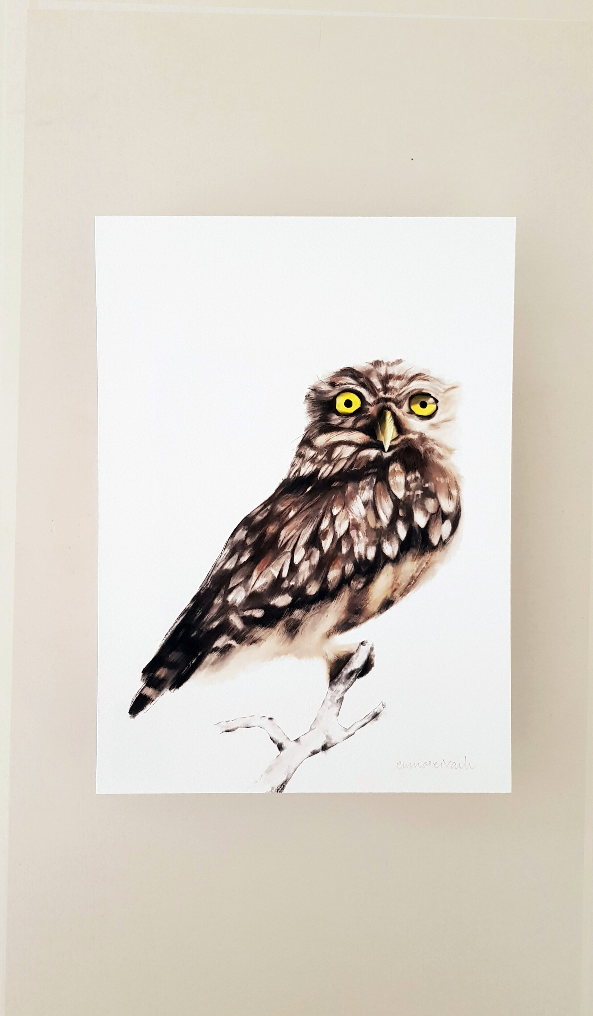 Gaudeix de la bellesa del mussol comú, afegint un toc de natura a la decoració de la teva llar. Làmina decorativa (print) giclée d'alta qualitat, impresa en paper German Etching de Hahnemühle que permet una excel·lent reproducció de colors